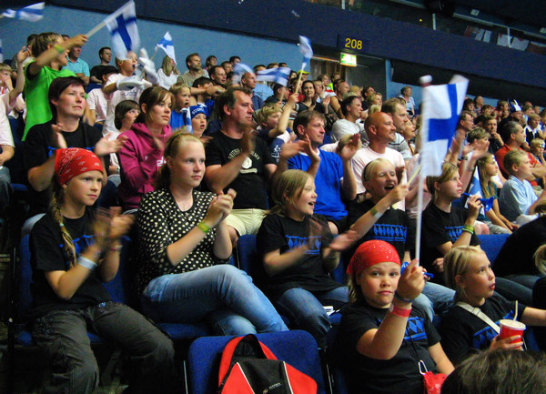 Lentopalloliiton myönnettyä Power Cup – mitalisteille pääsyliput maailmancupin otteluun Suomi-Brasilia, päätettiin matkasta tehdä kertalaakista päivä vailla vertaa. Jymyhän saavutti Powerissa hienot 5 mitalia ja tämän matkan ryhmä koostui pääosin E-ikäisistä pojista ja tytöistä C-pojilla vahvistettuna. Lähes 50 hengen "iskuryhmä" starttasi reissulle Prisman pihalta jo varhain aamutuimaan. Päivän ohjelmaksi oli lentopallo-ottelun lisäksi päätetty sisällyttää Linnanmäen reissu ja "Lintsin" rannekkeet kiinnitettiinkin paikoilleen jo hyvissä ajoin ennen Jalasjärveä. Matka Helsinkiin sujui leppoisissa merkeissä ja tunnelma bussissa oli jymymäisen hyvä pienistä matkapahoinvoinneista huolimatta. Linnanmäelle saavuttiin melko tarkkaan puolen päivän maissa. Matkanjohtaja Toivolan laatiman aikataulun mukaisesti "kieputusta, kastelua ja hattaraa" oli aikaa harrastaa noin viiden tunnin ajan. Päivä Linnanmäellä sujui odotetun kaltaisesti. Ryhmä hajaantui ympäriinsä kukin taholleen ja laitteet katsastettiin kunkin oman uskalluksen mukaan. Vanha vuoristorata oli yhä tukevasti paikallaan (rakennettu 1951) ja uusimmat laitteet pyörittivät kuin pyykkikoneet matkustajiaan ja kastelupuoli hoidettiin Vonkaputouksen roiskeissa. Viiden jälkeen ryhmä aloitti siirtymätaipaleensa Espoon Bluesin Länsi-Auto Areenaan. Pakollisten torvi-, pipo-, lippu- pop corn- ja limsaostosten jälkeen ryhmä oli viritetty varsinaiseen taisteluvireeseen. Lähes 3800 katsojan joukossa ryhmämme erottui varmasti edukseen niin tuuletusten kuin muunkin kannustuksen osalta. Liekö tästä apua kuuri siihen, että Suomi vei viimein erän maailman lentopallon ykkösmaalta. Valitettavasti tämä ei kuitenkaan riittänyt vaan vieraat korjasivat voiton lukemin 1-3. Ottelun päätyttyä alkoi nimikirjoitusten metsästys. Pienen tauon jälkeen Suomen pelaajia alkoikin ilmestyä kenttäalueelle ja ryhmämme aktiivit saivat Suomen lippuihinsa ja käsivarsiinsa suosikkiensa nimmarit ja taisipa Kata kävellä jopa Brasilian verkkaritakki päällään linja-autoomme. Pitkästä päivästä huolimatta Duracell-pattereilla varustetut matkailijamme jaksoivat touhuta kotimatkankin erilaisia kilpailujaan ja karavaani saapui viimein kotipitäjäämme klo 02.30 aikoihin. Hieno retki hyvässä seurassa ! Kiitos kaikille osallistujille ja matkan järjestäjille ! Marko |