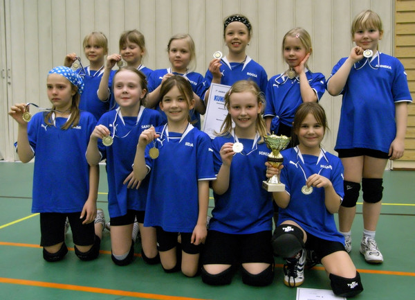 Nurmon Jymyn F-tytöt vm. 1999 päättivät aluemestaruussarjan kaksoisvoittoon ! Tokaluokkalaisista koostunut 12 tytön ryhmä on harjoitellut kuluvan kauden aktiivisesti ja tulokset ovat olleet sen mukaiset. Panttereiden kausi on pitänyt sisällään F-tyttöjen sarjan lisäksi myös E:n tiikerisarjaa ja Tikrut ovat pelanneet pääosin F-tyttöjen sarjaa. Kausi avattiin käytännössä Kurikan Millenium-turnauksessa, jossa Tikrut saavuttivat hopeaa Panttereiden pelatessa E-tyttöjen sarjaa. Pantterit: Emmi Riikilä, Sanna Hakamaa, Iida Hakala, Mikaela Pahkala, Sonja Latukka ja Hanna Takala. |