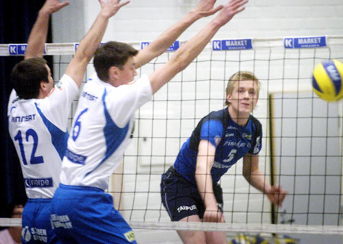 Nurmon Jymy kaatoi tunnin pelaamisen jälkeen Himanka-Kalajoen vieraissa erin 3-0. Nurmolaisten johtajana jatkoi Tuomas Ruuska. Jymy on tasapisteissä sarjakakkosena Ettan kanssa. Nurmon Jymy jatkoi voittokulkuaan miesten 1-sarjassa, kun vierailija kaatoi kotijoukkue Himanka-Kalajoki Volleyn noin tunnin pelaamisen jälkeen murskaavasti erin 3-0 (23-25, 17-25, 17-25). Kalajoella pelatussa ottelussa kotijoukkue pääsi kiusaamaan nurmolaisia ainoastaan avauserässä. Vierailijoiden parhaimpana hääri Ville Sorvoja jota säesti avauserässä hyvin Alf Hillilä. Kuitenkaan avauserän tiukat pallorallit eivät saaneet jymyläisten päitä sekaisin vaan erävoitto kirjattiin 23-25 lukemin. Kahdessa viimeisessä nurmolaiset näyttivät kovuutensa eikä kotijoukkueella ollut minkäänlaisia mahdollisuuksia. Nurmolaisten paras oli jälleen Tuomas Ruuska, jolle parhaana palkitun pytty oli jo peräti kuudes peräkkäinen. Miehistö jatkaa huomenna otteluitaan Kajaanissa kun vastaan asettu vahva Kalevala Sport. Kauden avauskamppailussa Jymy oli etevämpi tiukasti erin 3-2 kotonaan. Sarjakärki Kiisto jäi Oulun jyrän alle Nurmolaisten päivän katseet kohdistuivat myös kärkiotteluun jossa kohtasivat Oulun Etta ja Vaasan Kiisto. Oululaiset olivat löytäneet oikean sävelen ja kaatoivat sarjakärjen puhtaasti erin 3-0 (25-23, 25-18, 25-18). Kiisto koki ensimmäisen tappionsa 1-sarjassa tällä kaudella. Nurmo ja Oulu ovat tällä hetkellä tasapisteissä 1-sarjassa. Muissa otteluissa Napapiirin Palloketut kaatoivat Kokkolan Tiikerit tiukasti erin 2-3, ja Kalevala Sport taipui Tornion Lentis -88 erin 1-3. Sarjataulukko