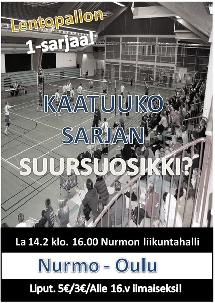 Kotijoukkue Nurmo haastaa ykkössarjan tähtisikermä joukkue Oulun Ettan liikuntahallilla la 14.2 klo. 16.00 sekä HU-Kalajoen sunnuntaina. Pysähtyykö Ettan Teppo Heikkilä ja muut?! Nyt ratkaistaan onko Jymy pudotuspeleissä! Nurmon Jymyn miehet saavat todellisen tähtisikermän kotiluolansa lauantaina 14.2 kun Oulun Etta saapuu. Seura on pelannut SM-liigassa kaudet 2000-06 ja tarkoitus on nousta liigakentillle ensi kaudella. Tavoitetta johtaa 34-ottelun maajoukkuemies Teppo Heikkilä. Ratkaiseva ottelu Jymy tarvitsee voittoa ettalaisista että mahdollisuudet ovat neljän joukkoon ja pudotuspeleihin. Siihen tarvitaan kannustusta koko jymyläisperheeltä! Oulun Etta on kerännyt tällä kaudelle järisyttävän kovan tähtisikermän. Suomenmestari vuodelta 2006 Juha Aho on sarjan ylivoimaisesti paras keskitorjuja ja liigakentilläkin parhaimmistoa. Yleispelaaja Jukka Mäkihannu on Suomen Cupin voittaja yhdessä Juha Keihäskosken kanssa, kun taas hakkuri Miika Tossavainen kokenut liigajyrä. Etta jyräsi Suomen Cupissa liigajoukkueita Oululaisten vahvasta ryhmästä on todisteita myös faktapohjalla. Suomen Cupissa kaatui SM-liigan mitalisuosikki Joensuun Riento sekä Keski-Savon Pateri. Lisäksi viime kaudet suomalaisia kenttiä hallinnut Rovaniemen Santasport oli vaikeuksissa puolivälierissä oululaisten kanssa. Ettan pelaajilta löytyy yhdessä liigakokemusta yli 500 ottelua! Pysähtyykö oululaisten supermiehet jymyläisten kotiluolassa. Kannustusta tarvitaan kauden runkosarjan viimeisen kotiviikonloppuun! Nurmon Jymy - Oulun Etta sunnuntaina 14.2 klo. 16.00 Runkosarjan päätöskamppailu Kurikassa!Heti lauantaisen ottelun jälkeen Jymy pelaa seuraavan kotiottelunsa kotona, mutta tällä kertaa Kurikassa. Pelipaikkana toimii Kurikan Monitoimikeskus eli tutummin Monnari. Jymyläisten riveistä löytyy useita entisiä Kurikan Ryhdin pelaajia. Tuomas Ruuska sekä Tuomas Ylevä ovat pelanneet junioreissa kurikkalaisseurassa, kun taas Pasi-Pekka Huhtanen sekä Risto Hoiska aikuissarjoissa. Jymy kohtaa kauden viimeisessä runkosarjaottelussa Hu-Kalajoen klo. 17.00. Tuolloin ratkeaa viimeistään onko Jymy jatkopeleissä vai päättyykö kausi. Oheisesta linkistä hakemaan lentisfiilistä viikonlopun peleihin! http://www.youtube.com/watch?v=g-wQr-48jQQ |
