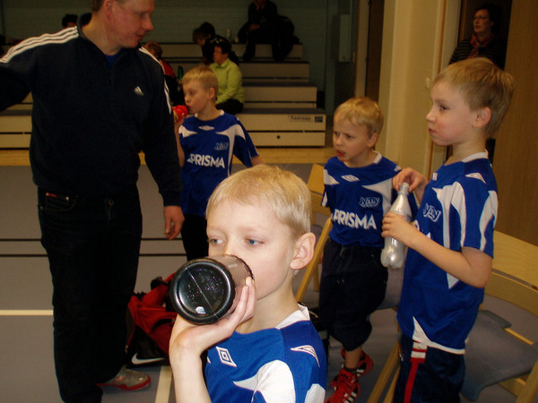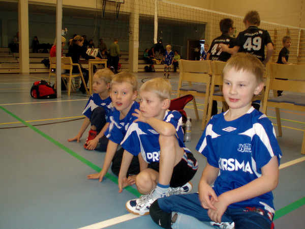 Jymyn nuorimmaiset, F-poikien Tiikeri-ryhmä aloitti taipaleensa kohti maajoukkuetta komeasti Isojoelta. Vaikka voittoja ei vielä vuotta vanhemmilta vastustajilta saatukaan, tuli kolme kuukautta harjoitelleelle joukkueelle roppakaupalla kokemusta tulevia koitoksia varten. Kolme peliä kahdessa tunnissa on iso urakka pienille miehille, mikä näkyi etenkin viimeisen ottelun viimeisessä erässä. Puhti oli jo vähissä, eikä sitä paljon lisännyt edes se, että vastustajajoukkue Laihia kannusti nuoria jymyläisiä kuin omiaan.Tiikereissä pelaa neljä poikaa kolmelta eri koululta ja neljästä eri luokasta. Ensimmäisen turnauksen parasta antia olikin se, miten hyvin pojat löysivät peli-innon, joukkuehengen ja yhdessä tekemisen riemun. Vaikka joukkuetoverit vielä lpeliin lähtiessä tunsivat toisensa aika huonosti, oltiin yhtä tiikeriä viimeistään siinä vaiheessa, kun vedettin päälle suoraan painosta saatu Jymyn sinivalkoinen pelipaita. Tästä on hyvä jatkaa. Seuraavan kerran Tiikerit pelaavat Tanelinrannassa sunnuntaina 7.2. Tulkaa kaikki kannustamaan! Marja Tyynismaa |