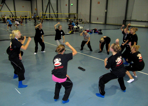 ...ja siirrytään otteluun numero 4. Vastassa järjestävän seuran Kalen likat. Ensimmäisen erän murskavoiton (25-4) jälkeen vellit vartaloon ja toinen erä suhteelisen tiukasti meille 25-21. Pinnoja Anskulle ja Natalle 5 kpl / tyttö.