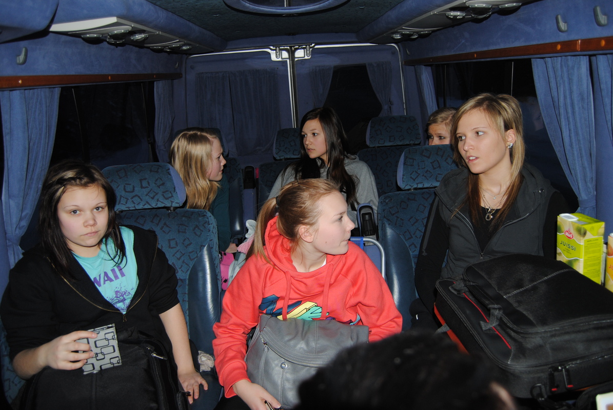 Perjantaina starttasimme Outokummun pikkubussilla kohti Saloa klo 15 reikä reikä. Pitkä matka kului hyvin popittaessa ja parhaassa seurassa. Matkalla käväisimme vilkaisemassa armeijan meininkiä Niinisalon sotkussa. Vajaan 5h matkan jälkeen kurvasimme hotelli Fjalarin pihaan. Iltalenkki päätyi lopulta McDonaldsiin. Allasbileet alkoivat hotellimme laadukkaassa uima-altaassa ja jatkoille siirryttiin Emman ja Neean "valtavaan" poreammeeseen. Juttua olisi riittänyt vaikka koko yöksi, mutta nukkumaankin oli mentävä lauantain jännittävien pelien takia. Hotellin muhkean aamupalan voimalla siirryimme pelaamaan Kiskohallille. Ekana vastassa kaatui Vihdin lentopallo 2-0 (25-16, 25-15). Retsi tappoi monta palloa näyttävästi! Ekan pelin jälkeen oli hyvä siirtyä kohtaamaan Lounais-Suomen aluemestarit, Salon Chilit. Hallissa riitti ainakin meteliä, poppivehkeiden huutaessa. Tiukan ja tasaväkisen hermoja raastavan pelin lopputulos ratkesi meille 2-0 (25-23 ja 26-24). Julia tykitti rajusti naamapuolustuksesta huolimatta kuus suoraa pinnaa. Viimeinen peli Loimaan Jankkoa vastaan päättyi meille 2-0 (25-10, 25-20). Anskun hyppyleijojen ja Annan hyökkäyspisteiden ansiosta peli sujui todella hyvin. Reissu oli kokonaisuudessaan mahtava kokemus muiden joukossa. Apsin herkkuruuasta kylläisinä nyt vielä 3 tuntia ajomatkaa jäljellä.