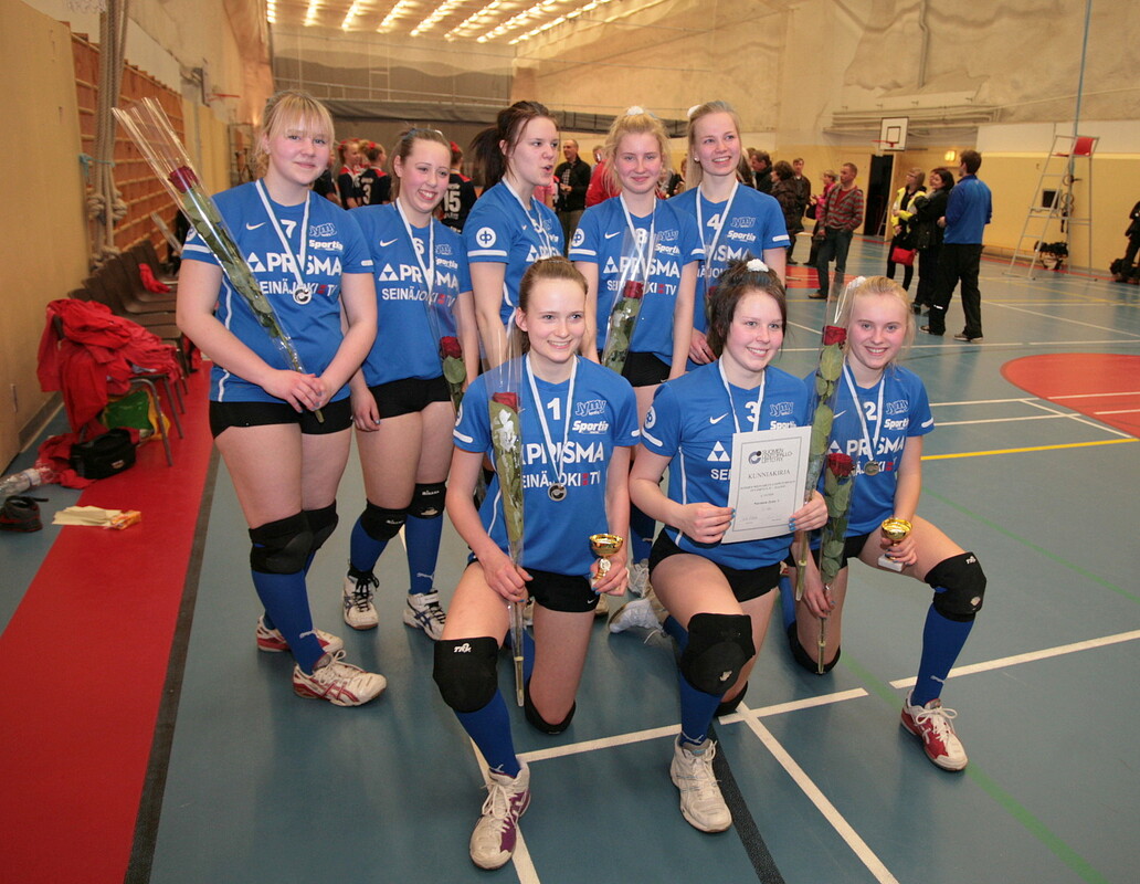 OLI KAUDEN TILIPÄIVÄ Mahtavaa, hienoa, upeeta, fantastista, aivan mieletöntä! Jyväskylän C-SM-viikonloppu tarjosi kyllä sellaiset pulssiennätykset, että ennätykset ropisivat. Olo on ainakin allekirjoittaneella näin maanantaiaamuna, kuin olisi ollut viikon juhannusfestareilla Himoksella! Enkä liene ainoa. Tyttöjen esiintyminen C-SM-finaalissa oli komeata katseltavaa. Koko kausi oli 8 tytön voimilla viety vahvasti päätökseen. Oli tilipussien jakoaika. Ja kyllä sitä tiliä ropsahtikin. Kaksi päivää voitosta lähestulokoon voittoon. Siinä rytäkässä kaatuivat Ylöjärvi, Salpis, Kaimat ja Jyväskylä. Eura olikin sitten kivi kaskessa. Mutta kyllä me taisteltiin. Taisteltiin ja taisteltiin. Vietiin ekä erä. Melkein vietiin toka erä. Ja vielä lähempänä oli kolmannen erän voitto. Kannustus oli huimaavaa. Laitilat, Kosket, Mäkiset, Hautalat, Niemet, Harjut, Peltomäet ja Saukkonen, jonka äänivarustus tullee palautumaan normaaliksi varmaankin tuossa kesän loppupuolella, antoivat kannustukselleen pari kenttäpelaajaa lisää kentälle. Kiitos! Ja tässä pääosan esittäjät: Nro 1 Lotta Harju - All Stars keskitorjuja – kehittynyt taitavaksi kooteeksi ja tämähän on vasta alkua! Nro 2 Julia Niemi - All Stars passari – passari kuin suoraan lentopallon ohjekirjasta! Nro 3 Jemina Laitila - yleispelaaja, kapteeni – käsi pelkkää rrrrautaa! Nro 4 Sandra Hautala - yleispelaaja – nelosesta, kakkosesta, keskeltä, takaa – upea jokapaikantaitaja! Nro 5 Fiija Maunula – keskitorjuja- pallolle vauhtia 300 km/tunnissa! Nro 6 Minttu Peltomäki – yleispelaaja – pallotaituri, oli se sitten pieni tai iso! Nro 7 Veera Saukkonen – yleispelaaja – Veeran kädellä pallo lentää helposti Liikkarilta Prismaan! Nro 8 Josefiina Mäkinen – yleispelaaja – kova kehityskaari, ilopilleri ja ”ennätystehtailija”! Markku Hautala – valmentaja – 2008 C-SM kulta, 2012 C-SM hopea, … mitä vielä Juhani Niemi – Niemi muuttaa, näyttää, munaa kaiken (sisäpiirijuttu heh) Tälle kaudelle tuli hopeinen piste perään. Se on saavutus, mistä täytyy olla niin pelaajien kuin koko Jymyn lentopallojaoston olla ylpeitä. Ja niin varmaan kaikki ovatkin. Hyvää kesän odotusta kaikille ja Turkuhan se siellä pilkistelee. Juhani Niemi