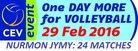 Karkauspäivä on otettu erityiseksi lentopallon teemapäiväksi, jonka aikana tavoitteena on pelata ennätysmäärä lentopallo-otteluita ympäri Eurooppaa. Karkauspäivänä 29.2. CEV ja jäsenmaiden liitot kampanjoivat lentopallon puolesta. CEV on luonut tapahtuman OneDayMore4Volleyball. Tapahtuman ideana on pelata mahdollisimman monta yhden erän peliä. Erän pituus 29 pistettä. Jymy osallistuu tapahtumaan seurana. Liikuntahalli on varattunan meille klo 16:00-20:30. Tavoitteena pelata 24 ottelua illan aikana. Pelataan 6 vs 6 näytösotteluja. Nyt meillä on mahdollisuus yhden illan aikana esitellä seuramme joukkueet. Toivottavasti saadaan kattava edustus C-ikäluokasta ylöspäin. Osallistuminen on maksutonta. Kaikille pyritään järjestämään ainakin 2 peliä. Ilmoittautuminen 20.2. mennessä. Lisätietoja ja ilmoittautumiset susanna.koskinen(ät)netikka.fi |