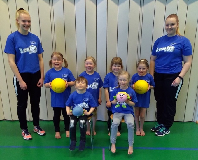 Lentisliikkarilaiset Veera Härkönen, Silja Suokko, Petra Mäkipelto, Ellen Ahonniska ja Aleksi Ala-Luoma ja Sofia Kallionsivu